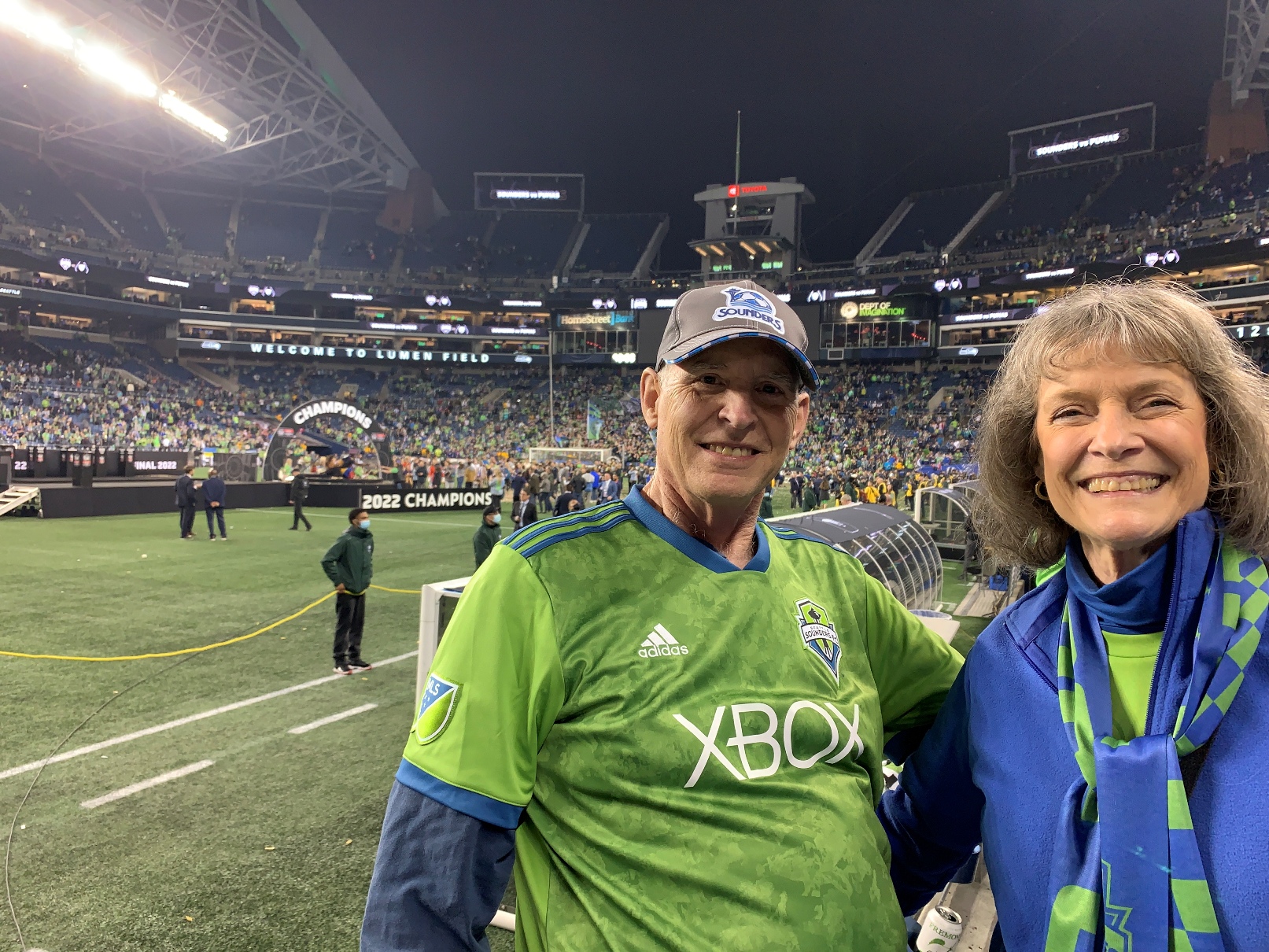 Spring allowed us to indulge in our favorite professional sports teams. Thanks to dear friends the Bloxhams, we got to attend 7 MLS Seattle Sounders soccer matches, including their ConCACAF victory – a first for any U.S. soccer team. Our attendance at Mariners games slipped to one, but that will change next year! Seattle has some young, fun players and anticipates better years ahead! We were invited to the Seahawks draft party. A first for us, and a fun event to engage with crazy, rabid football fans! Rich won the big door prize—a Tyler Lockett autographed helmet! Rich later attended a Seahawks game and watched him catch the winning touchdown pass.