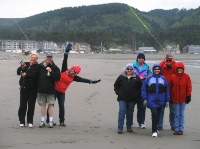 In early May we joined 8 of our friends for a relaxing weekend in Seaside, a small community on Oregon’s Pacific coast. It included playing whiffle ball golf and flying kites on the sandy beach, with golf providing the greater challenge and entertainment. With the strong ocean winds, your ball was as likely to land behind you as in front of you. And when the rains got too bad, we played card games.
